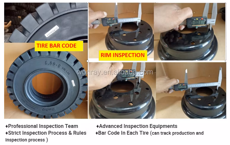 Wonray produce tutti i tipi di pneumatici solidi, compresi quelli per pneumatici (pneumatici solidi per veicoli con carrello elevatore e piccoli veicoli con guida sul campo, pneumatici OTR solidi, pneumatici speciali per rimorchi ecc.), pneumatici solidi con cerchioni (pneumatici solidi Skid Steer con cerchioni, pneumatici solidi Skid Steer per cerchi pneumatici, Pneumatici solidi per macchine sinterizzate ecc.), pneumatici solidi a pressione, pneumatici solidi per piattaforme di sollevamento e così via. Ogni tipo di pneumatico solido è ampiamente applicato in diverse aree. Gli pneumatici Wonray Solid sono conformi a standard quali cinese GB, US tra, europeo ETRTO e giapponese JATMA e hanno superato la certificazione di qualità ISO9001.